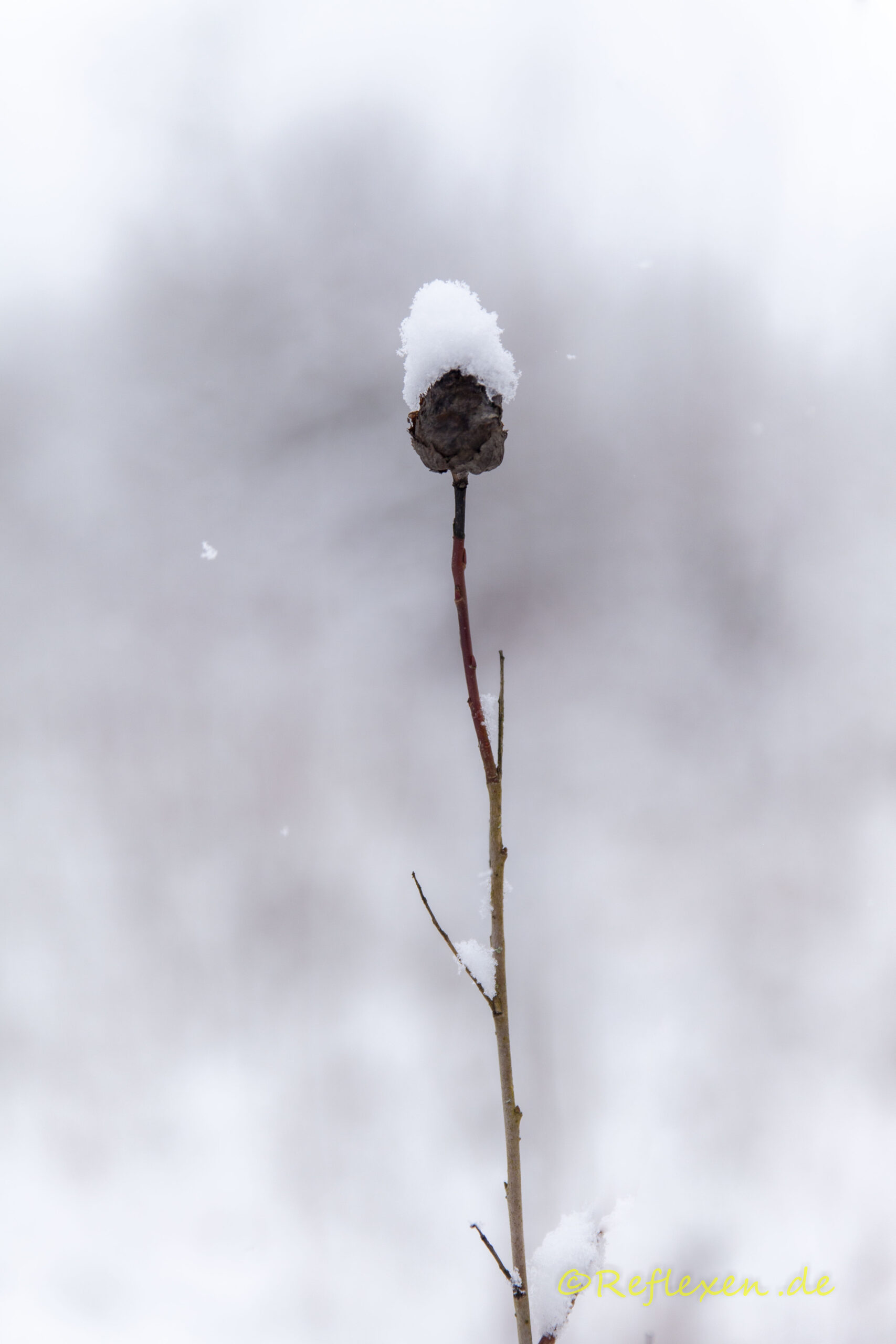 Ein letztes grünes Blatt frisch eingeschneit.