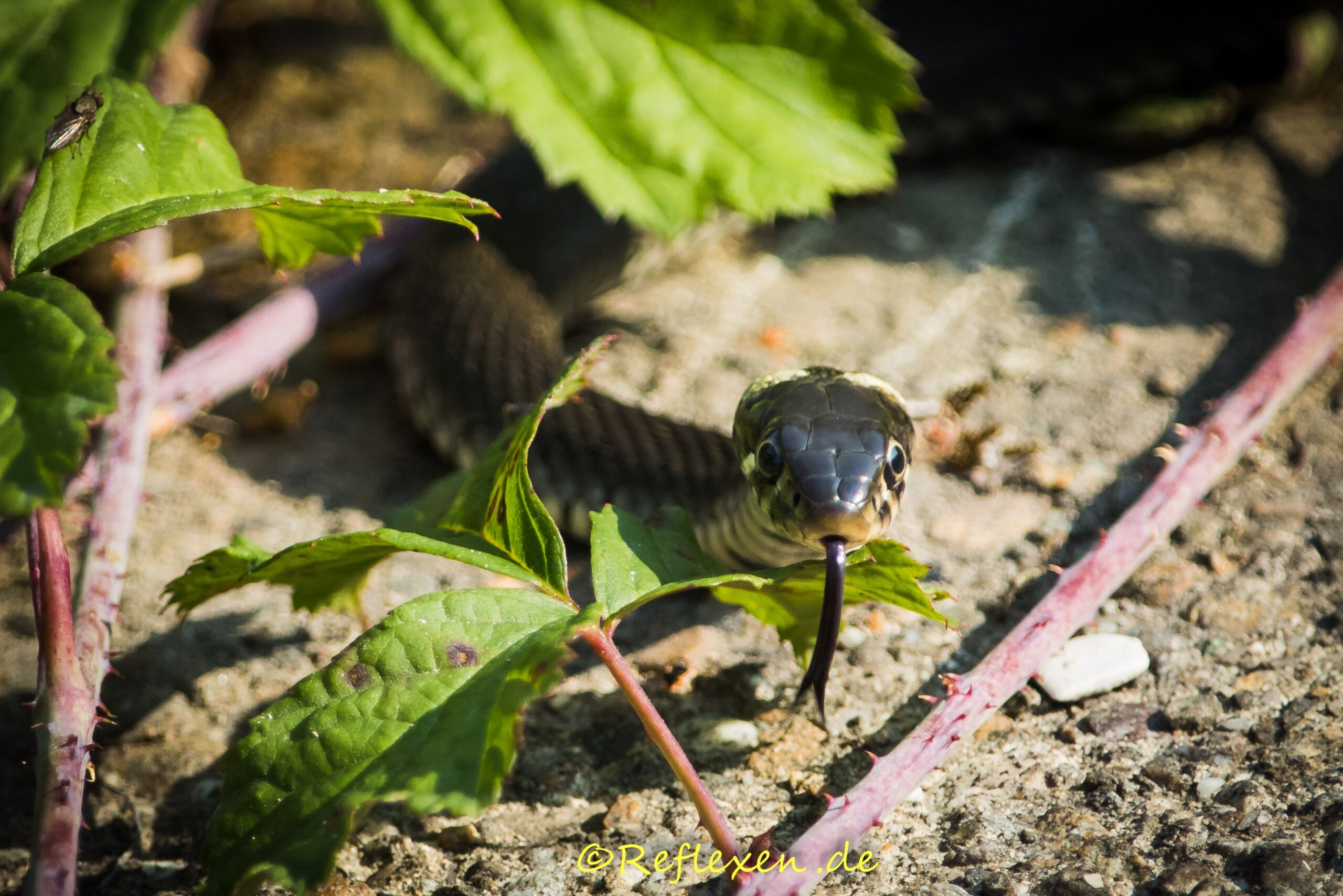 Leider konnte ich die Jagd der Ringelnatter nicht vollständig dokumentieren, da sie einfach ein wenig zu schnell für mich war. Oder war ich zu langsam? 😉 Jedenfalls liebt sie junge Frösche und Kaulquappen sehr. In jungen Jahren hält sie sich erst mal noch an Insekten (Moskitos), die fängt sie aber nicht weniger schnell.