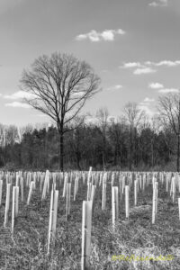 Interessanterweise sind Bäume auch dann noch fotogen wenn sie bereits tot sind, was ich leider immer öfter sehe. Dabei kommt bei mir immer eine gewisse Stimmung auf, die ich dann versuche in die Bilder aufzunehmen. Des weiteren überkommt mich auch eine ganz eigene Stimmung wenn ich so einen „Waldfriedhof“ sehe. Da stehen in Plastikhüllen geschützte Setzlinge zur Wiederaufforstung wie Stelen auf einem Soldatenfriedhof da und zeigen an das hier viele Bäume gestorben sind.
