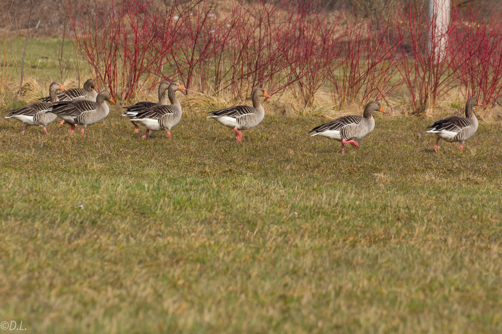 Schön brav im Gänsemarsch watschelt die Gesellschaft zum See.
