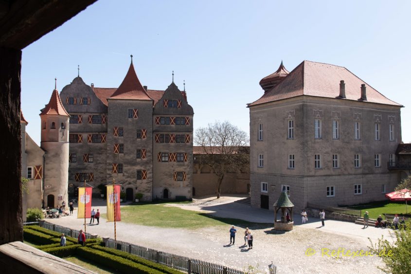 Es hat mich mal wieder in eine andere Gegend verschlagen. Es ist gar nicht mal so weit weg. Trotzdem von mir recht unbeachtet ist das Donau-Ries. Hier gibt es eine durchaus sehenswerte Landschaft, Städte oder einfach Plätze. So einer ist die Harburg – Schloss und Burg zugleich und viel älter als das prunkvolle Schloss Neuschwanstein. Bei einer geführten Besichtigung kann man ein Gefühl für das Leben der Fürsten dort entwickeln. Insbesondere für das Leben ihrer Gefolgsleute in der damaligen Zeit. Und das dank dem Blick durchs wachsame Holzauge.