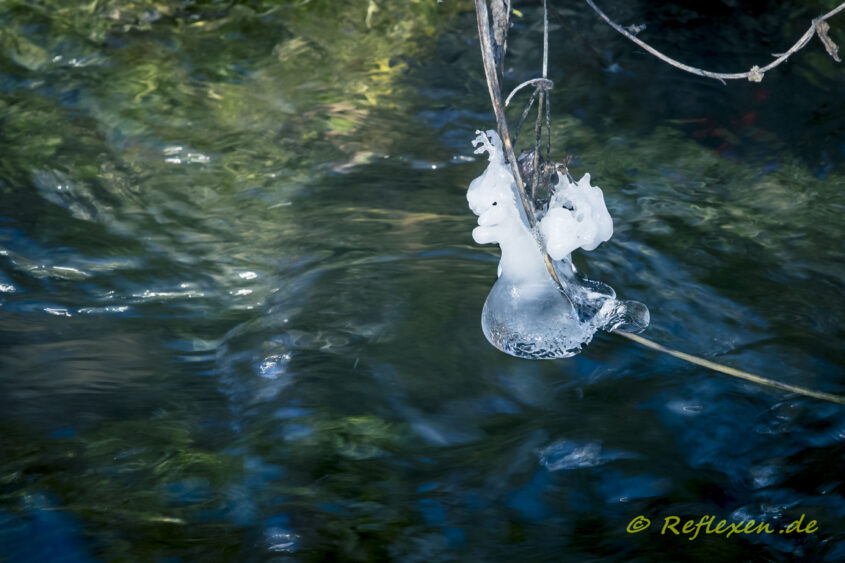 zwei kleine Eis-Elfen reiten den Bach